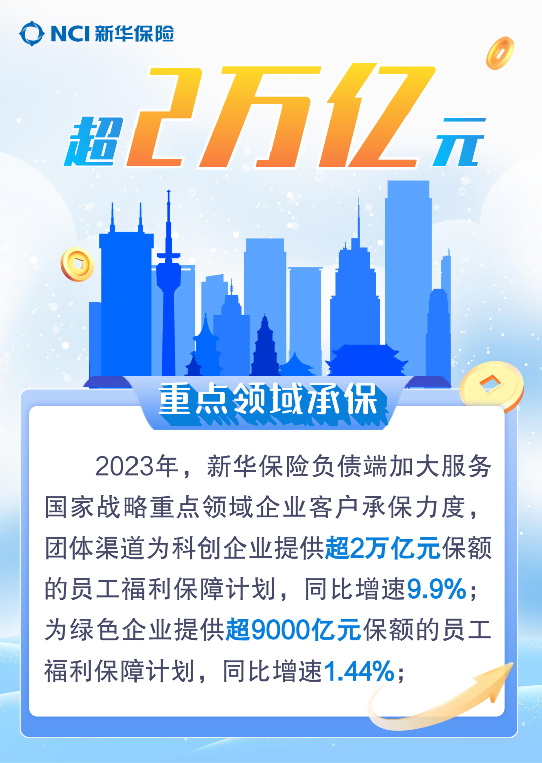 新华保险持续发挥服务实体经济主力军作用,调整投资策略,优化投资布局。截至2023年12月底,服务国家战略投资余额超2435亿元,同比增速19.68%。与去年相比,投资举措进一步丰富,投资领域更加全面,投资额度进一步加大。除继续保持区域协调发展领域投资额度最大外,还加大在科创、绿色、中小微等领域投资布局。