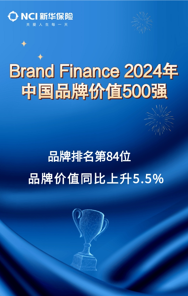 3月,全球领先的品牌评级机构Brand Finance发布了“2024全球最具价值保险品牌100强排行榜”,新华保险凭借稳健的经营发展和良好的品牌口碑,连续10年进入榜单前50强,位列第34位。