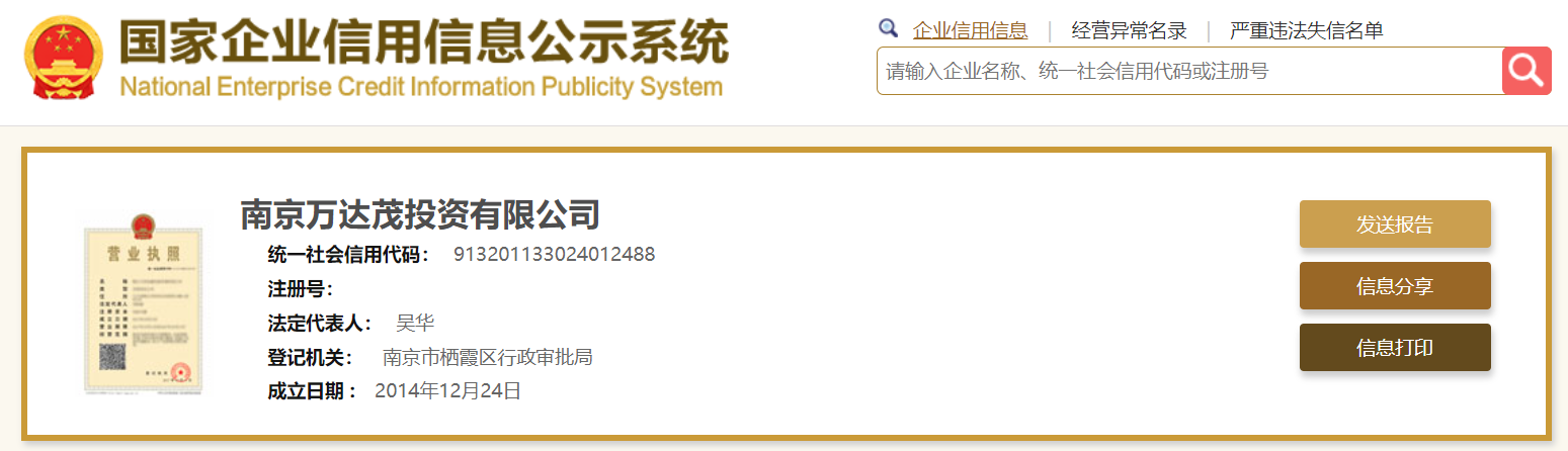 南京万达茂投资有限公司成立于2014年12月24日,法定代表人为吴华,注册资本为14.42亿元,公司经营范围包括游乐园服务;房地产经纪;物业管理等。