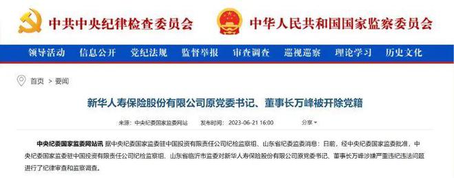 去年12月,原新华保险董事长万峰因受贿,一审被判有期徒刑六年六个月,并处罚金七十万元。