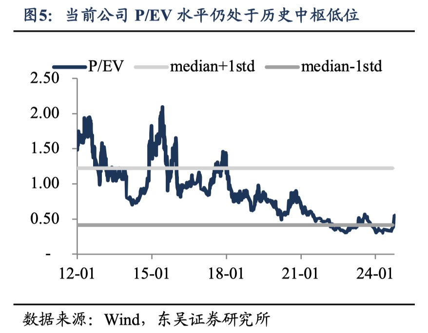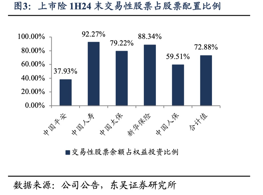 从本轮弹性来看,我们计算了1H24上市险企股票余额/所有者权益比值,其中新华(160%)国寿(88%)太保(75%)平安(26%)人保(13%);我们计算了1H24上市险企交易性股票余额占权益股票投资比例其中国寿(92%)新华(88%)太保(79%)人保(59%)平安(38%)。我们预计若后市权益市场进一步进攻向上,公司业绩弹性将进一步得到释放。
