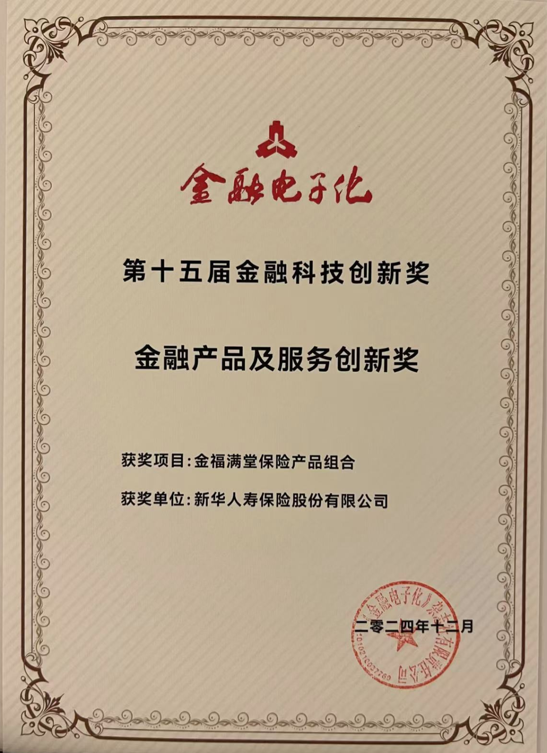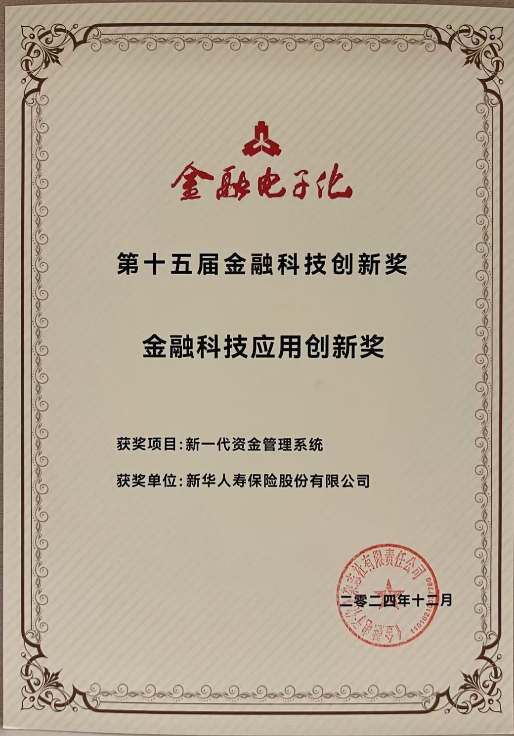 近日,中国人民银行《金融电子化》杂志社公布“第十五届金融科技创新奖”获奖名单。新华保险“新一代资金管理系统”和“金福满堂保险产品组合”分别荣获“金融科技应用创新奖”和“金融产品及服务创新奖”。