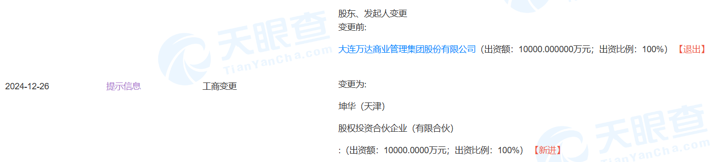 值得注意的是,坤华(天津)股权投资合伙企业(有限合伙)已接手万达商管旗下多家万达广场,包括北京万达广场实业有限公司、烟台芝罘万达广场有限公司、南京万达茂投资有限公司、成都万达商业广场投资有限公司等。