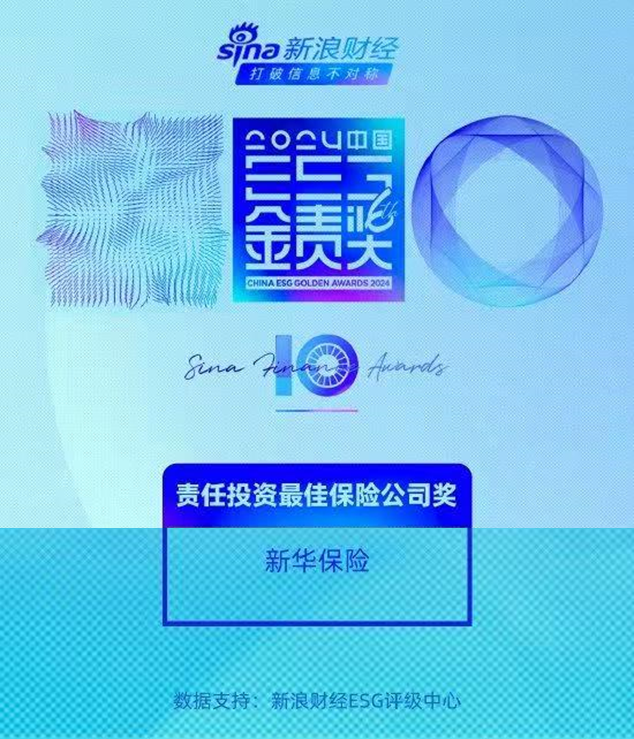 近期,新华保险凭借在社会责任履行和ESG理念践行方面的实践成果,接连获得三项大奖,分别是新浪财经评选的2024“金责奖”责任投资最佳保险公司奖,每日经济新闻评选的“2025 CSO 首席可持续发展官”,以及投资时报评选的“2024ESG绿色公司之星”奖。