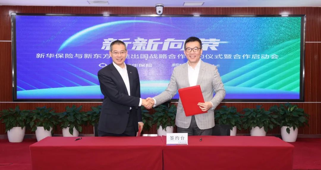 2025年4月2日,新华保险与北京新东方前途出国在北京举行战略合作签约仪式。新华保险党委副书记、总裁龚兴峰,新东方前途出国总裁孙涛出席活动并代表双方签署战略合作协议。新华保险党委委员、副总裁秦泓波,新华保险执委会委员、总裁助理刘琛,新东方前途出国助理副总裁明磊,以及各相关部门、业务领域负责人出席活动,共同见证这一重要时刻。