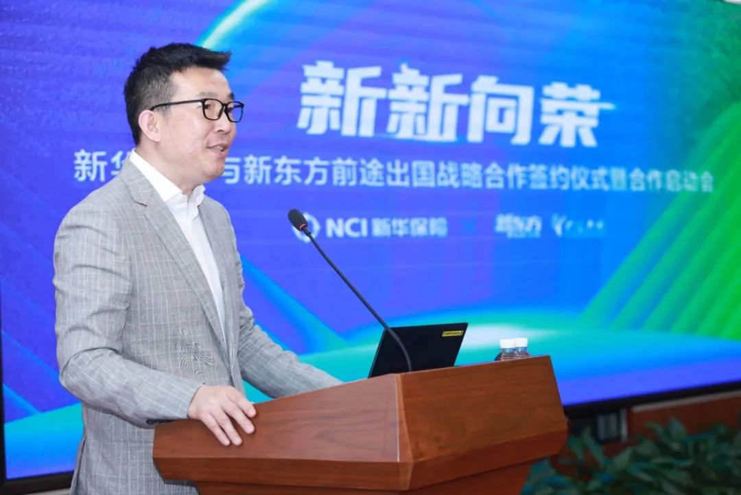 新东方前途出国总裁孙涛表示,本次与新华保险达成战略合作,双方将共同努力打造新生态。新东方可提供涵盖留学规划与申请、背景提升与学术指导、职业规划等,贯穿客户子女小学初中、高考、留学、实习到就业的“全周期、一站式”服务解决方案。此次合作是双方优势资源的深度融合,是一次金融与教育的创新融合,更是双方共同探索“保险+教育”新生态的重要里程碑,相信在未来的合作中,双方必将充分发挥各自优势,为客户创造更多价值,为社会贡献更大力量。