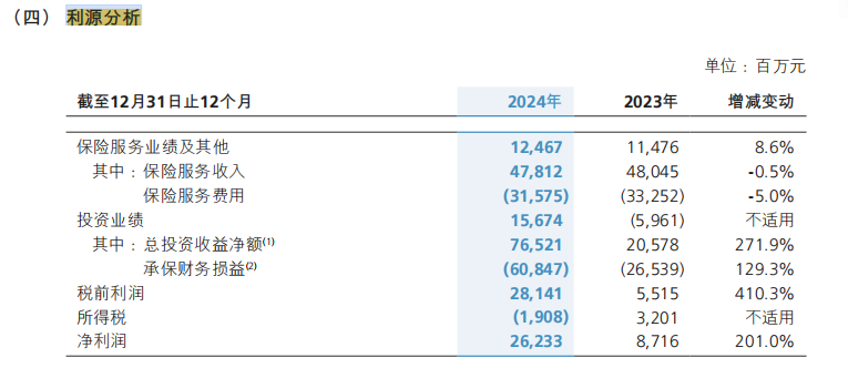 新华保险的业绩增长其实是投资业务带来的。2024年,新华保险服务收入125亿元,同比增长8.6%。而投资收入达到157亿元,同比大幅增加216亿元。(上一年其投资业绩贡献为负数)。
