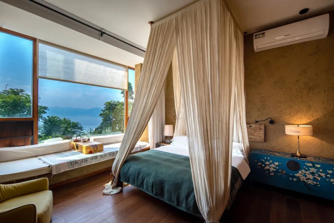 酒店位处湖畔山坡之上,纵览湖光山色,枕畔星辰入梦。酒店精设客房19间,设计精巧别致,装饰精美古朴,庭院精致风雅,尽显魏晋风流气息。酒店荣获2020年云南省旅游精品饭店,2019年第八届红土奖大赛“最佳民宿奖”,2019年第九届艾特奖国际空间设计大奖优秀奖。