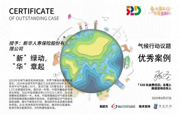 “520社会责任日”自2017年发起以来,已发展为中国社会责任领域最具影响力的公众倡议平台之一。此次荣获“520社会责任日”三项大奖,是对新华保险积极履行社会责任、深入推进ESG体系建设的充分肯定。