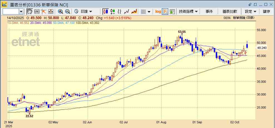 至于可选买哪只内险股?伍礼贤建议投资者结合自己的风险取态选股,若较进取可部署新华保险,因其无论第三季盈喜或上半年业绩,表现都较亮丽,亦令其股价表现强劲;若论股价相对落后,则可留意平保。新华保险今日借着盈喜消息裂口上升,可待回至48元附近才买入,目标价可定于前高位约53.5元。平保则可于现价53元附近买入,目标价定于58元。国寿亦可于22元附近吸纳,目标价定于前高位约25元。