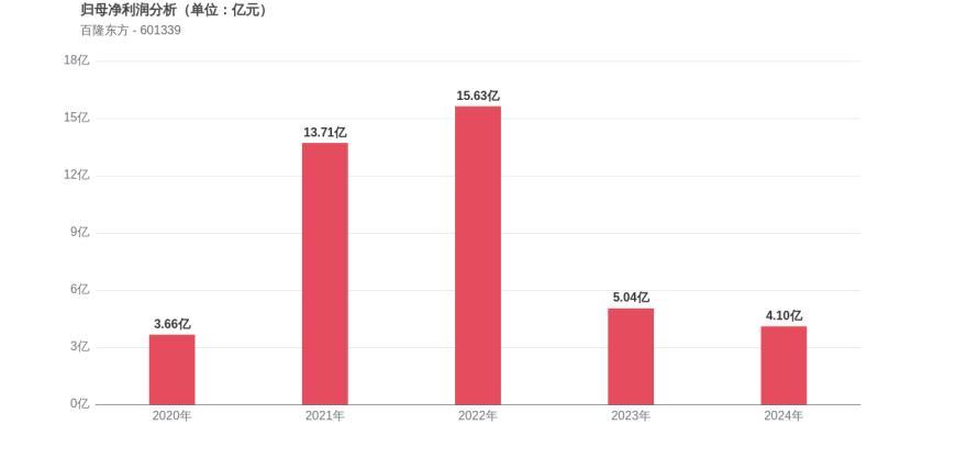 利润角度分析,2020年百隆东方实现归母净利润3.66亿元,2024年4.10亿元。五年间归母净利润增长12.02%,但期间经历了较大幅度的波动。