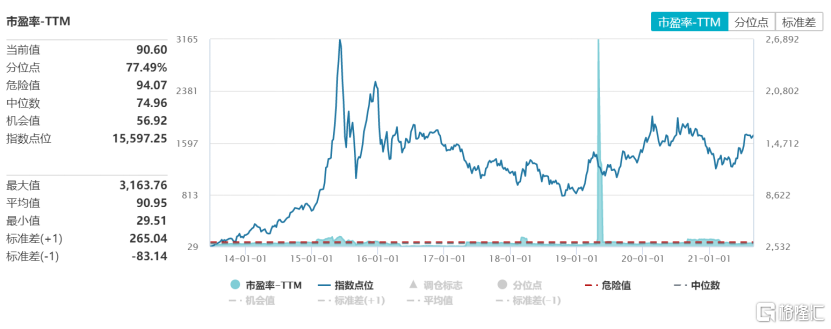 图表一:2014年至2021年网络安全板块市盈率TTM