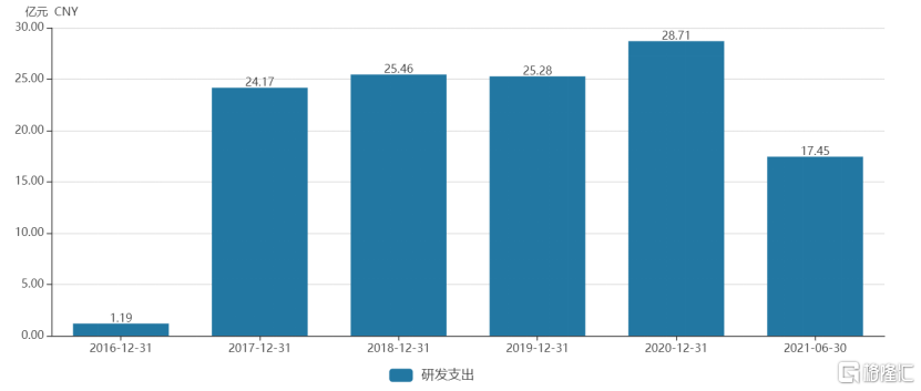 图表三:三六零2016年至2021年上半年研发支出