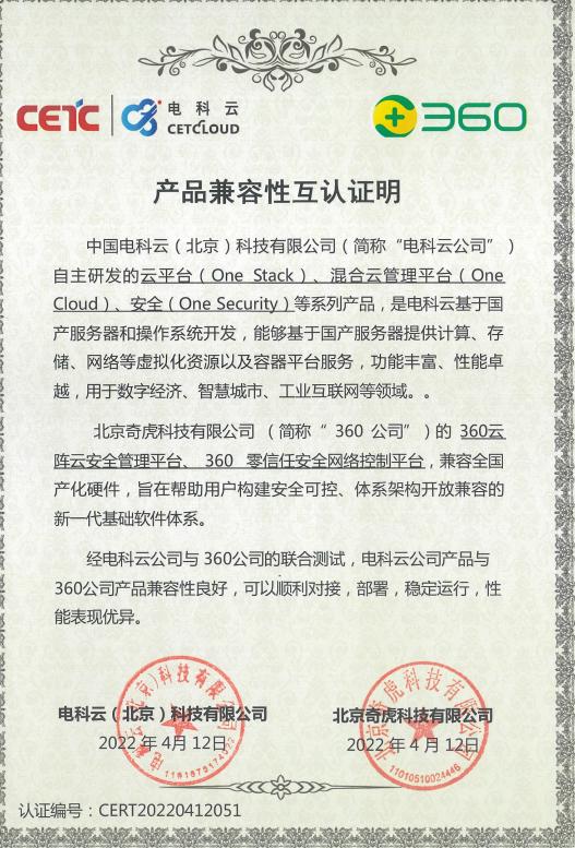 此次360与电科云的合作,预示着数字经济时代我国“云安全”保障能力的一次重大跨越式发展。据悉,双方将立足电科云专属云平台,依托以360安全大脑为核心的数字安全能力体系,在完成360云阵云安全管理平台、 360零信任安全网络控制平台、360织语产品与电科云云平台(One Stack)、混合云管理平台(One Cloud)、安全(One Security)等系列产品兼容性认证的基础上,共同打造“政务专属云+安全”整体解决方案,助力行业客户实现“安全上云”。同时,双方还将基于“云等保”联合方案,共同研究“云安全”运营合作新模式,为云上客户提供一体化安全增值服务,赋能其数字化转型发展。