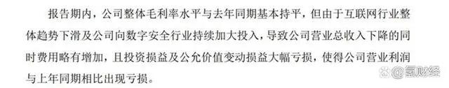 数据显示,去年全年三六零实现营业总收入约94.9亿元,同比下降约14亿元,同比减少约13%;预计实现归母净利润-24.8亿元,实现扣非归母净利润-20.3亿元,营业收入及净利润双双实现下滑。