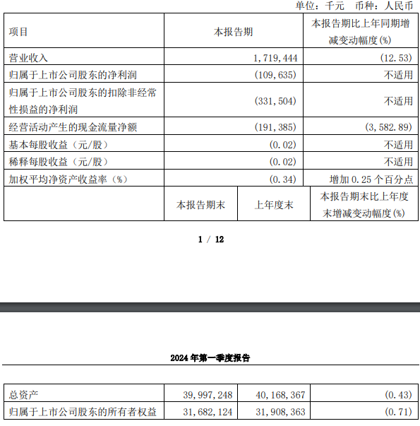从一季度来看,报告显示,公司一季度实现营业收入17.19亿元,同比下降12.53%。