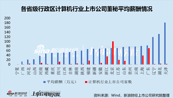 此外,从地域分布的角度来看,超一线城市与长珠三角地区的董秘薪酬水平显然更有优势。其中,北京、上海两地的2024年董秘平均薪酬分别为72.09万元、80.92万元,分别位列第10和第5,浙江、江苏、广东平均薪酬分别为70.99万元、72.48万元、83.31万元,分别位列第11、第9、第4。虽然辽宁、湖北、天津的董秘平均薪酬位列行业前3,但由于三地计算机行业上市公司较少,因此并不具备代表性。