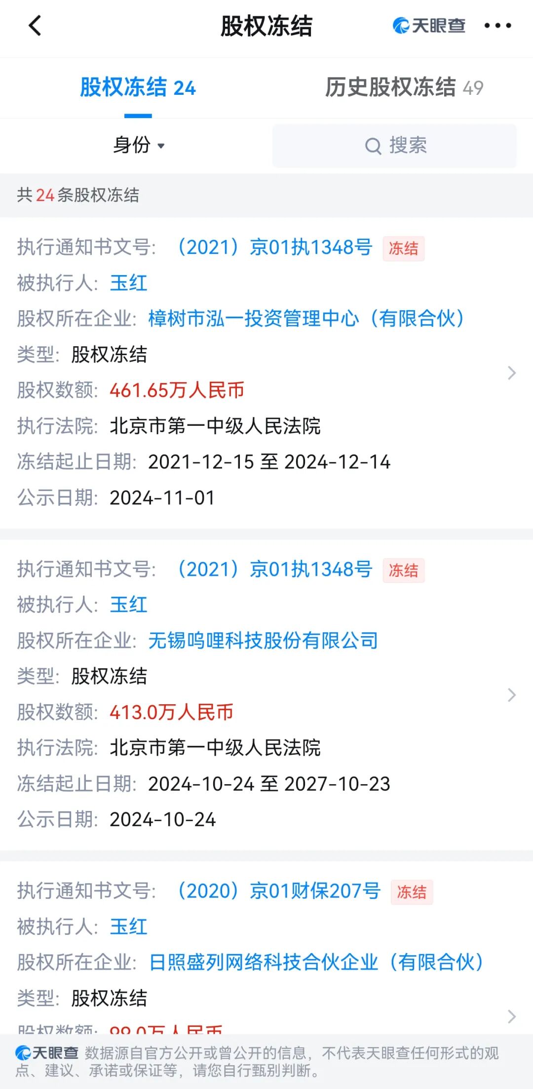 截至目前,玉红所在的多家公司存在股权冻结,可见其目前现金流告急。