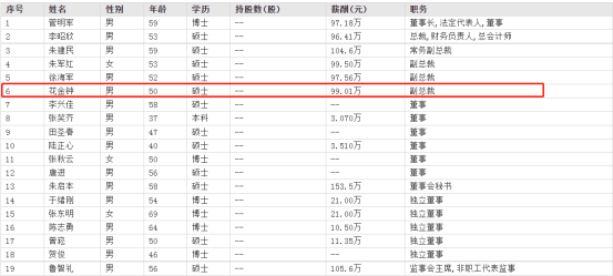 目前,花金钟仍然担任副总裁,同时也兼任公司执行委员会委员及中国证券业协会投资银行委员会委员。
