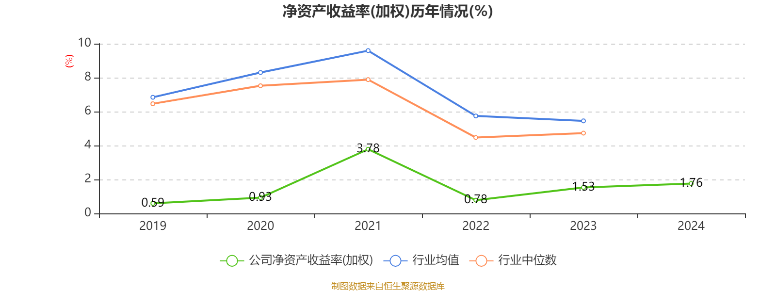 数据显示,2024年公司加权平均净资产收益率为1.76%,较上年同期上升0.23个百分点。