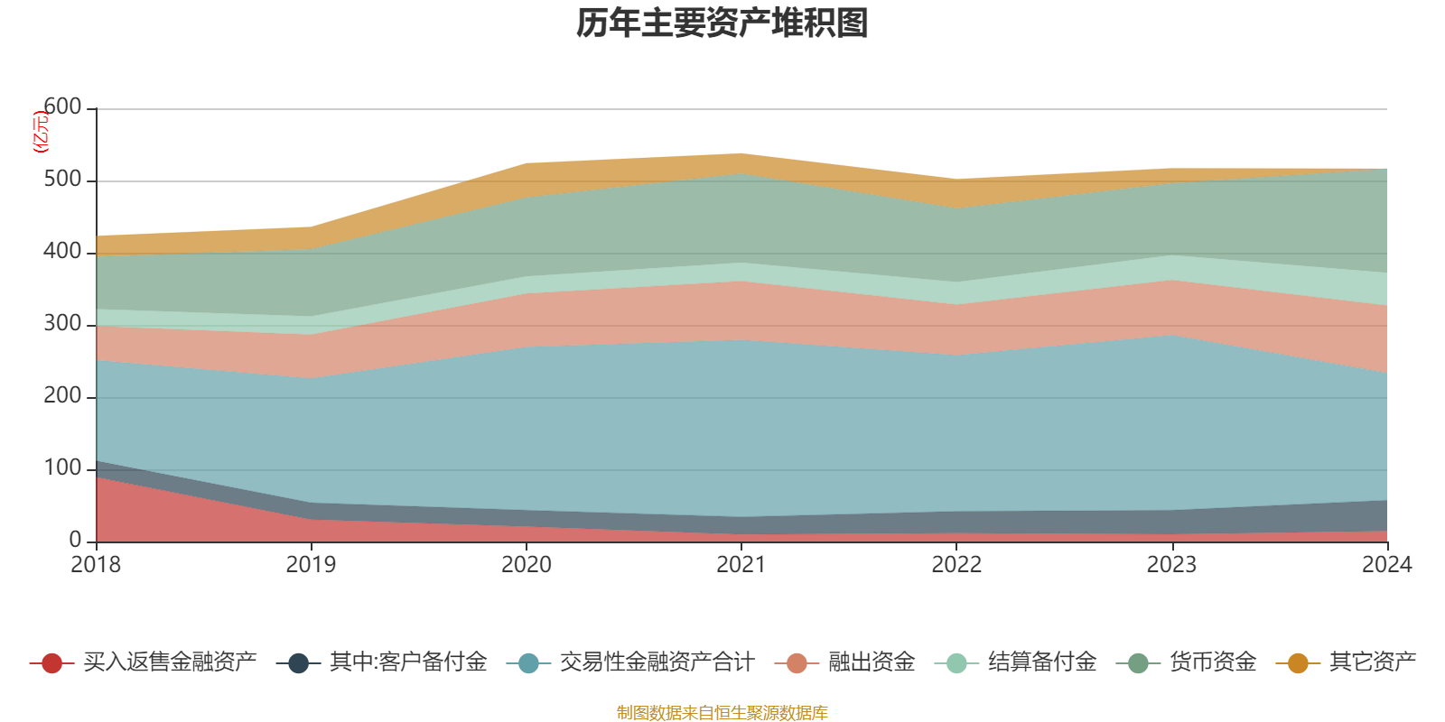 资产重大变化方面,截至2024年末,公司交易性金融资产合计较上年末减少27.37%,占公司总资产比重下降12.79个百分点;货币资金较上年末增加44.34%,占公司总资产比重上升8.6个百分点;融出资金较上年末增加22.64%,占公司总资产比重上升3.36个百分点;结算备付金较上年末增加31.34%,占公司总资产比重上升2.11个百分点。