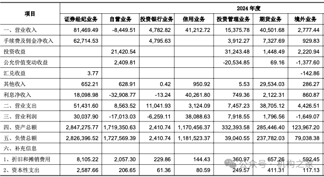 与此同时,投行业务正处于深度调整阶段,全年仅实现收入0.48亿元,同比大幅下降43.65%,并录得经营亏损6259万元。自营投资板块同样表现低迷,全年收入为-8449万元,较2023年明显回落。分项来看,投资收益由2023年的8.29亿元锐减至2.14亿元,公允价值变动收益亦从8937万元降至2409万元。此外,该板块的利息净支出为3.29亿元,虽较2023年的3.74亿元有所减少,但降幅有限,难以有效对冲收入端的显著下行。