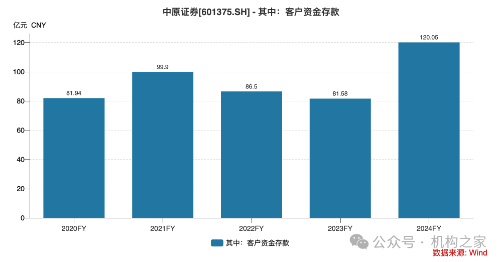 首先,高流动性资产占比显著上升。货币资金、结算备付金及存出保证金合计占总资产的比重由2023年的28.07%上升至39.04%。其中,客户资金存款同比大幅增加38.47亿元至120亿元,反映出客户交易活跃度增强。