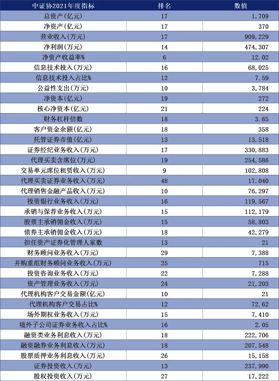 中证协数据显示,2021年度兴业证券的营业收入排名第17位,净利润排名第14位。而净资产收益率达12.02%,排名行业第6。