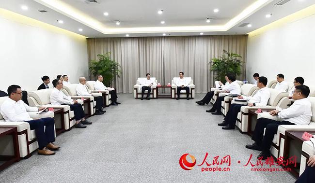 人民网雄安7月17日电 7月17日,兴业证券党委书记、董事长杨华辉一行到雄安新区考察调研,并参加兴业证券雄安分公司开业仪式。河北省委常委,雄安新区党工委书记、管委会主任张国华与杨华辉一行举行工作座谈。