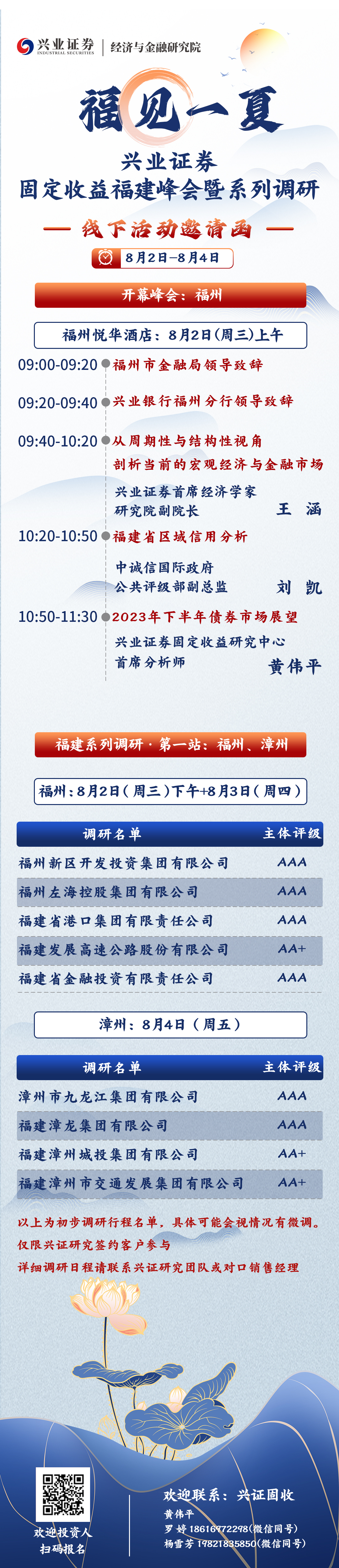 【兴证固收.调研邀请】下周:“福见一夏”——兴业证券固定收益福建峰会暨系列调研活动
