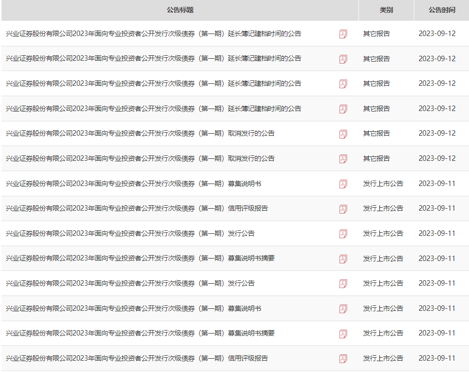 就在前一天,也就是9月11日,兴业证券更新发布了募集说明书、发行公告、信用评级报告等文件。