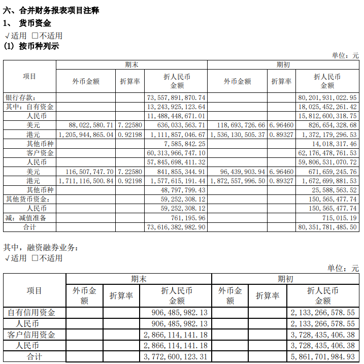 合并资产负债表显示,截至今年上半年末,兴业证券货币资金为735.58亿元,除去客户资金存款和减值准备外,自有资金为132.44亿元,其中人民币114.88亿元。