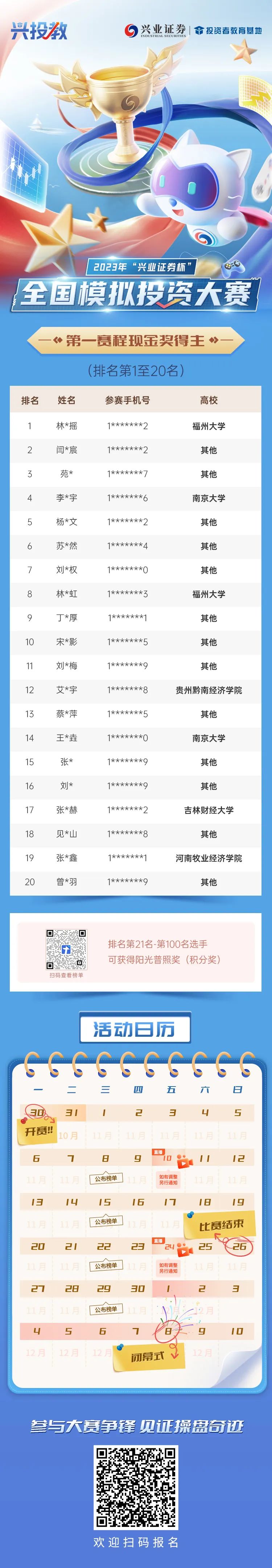 榜单揭晓!2023年“兴业证券杯”全国模拟投资大赛第一赛程排行榜