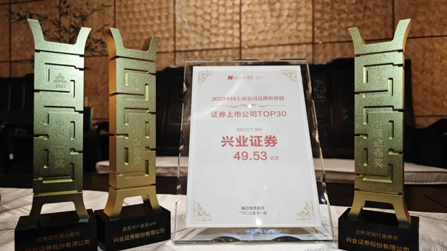 11月3日,由《每日经济新闻》主办的“2023资本市场高质量发展峰会暨2023中国金鼎奖颁奖礼”在深圳隆重举行,兴业证券喜获最受用户喜爱APP、创新突破托管券商、优秀文化建设案例等三项大奖,同时再次荣登“2023中国证券业上市公司品牌价值榜TOP30”。