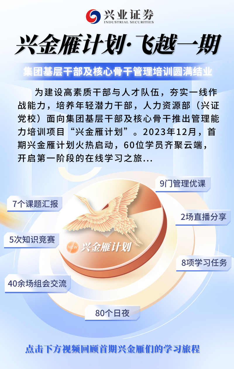后续,“兴金雁计划”将面向集团各单位基层干部及核心骨干持续开放学习,并结合各单位情况为学习优秀的学员创造更多线下学习交流的机会。