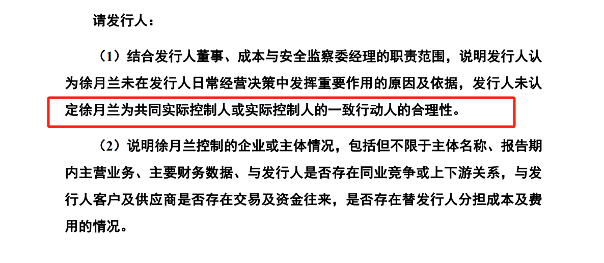 据此,乐尔股份被要求说明未认定徐月兰为共同实际控制人或实际控制人的一致行动人的合理性。