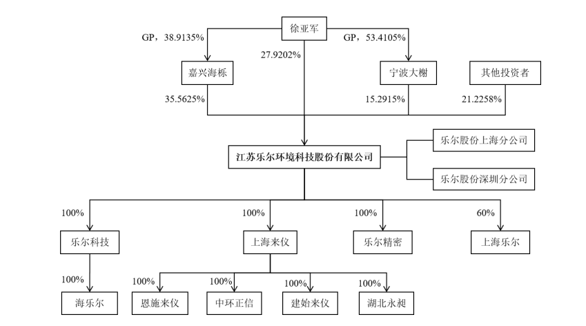 招股书显示,徐亚军直接持有乐尔股份905.66万股股份,占本次发行前乐尔股份股本总额的27.92%;徐亚军持有嘉兴海栎38.91%的出资份额,同时担任嘉兴海栎的执行事务合伙人,通过嘉兴海栎间接控制发行人35.56%的表决权;徐亚军持有宁波大榭53.41%的出资份额,同时担任宁波大榭的执行事务合伙人,通过宁波大榭间接控制发行人15.29%的表决权。据此,徐亚军直接或间接控制乐尔股份的表决权合计为78.77%,为乐尔股份的实际控制人。