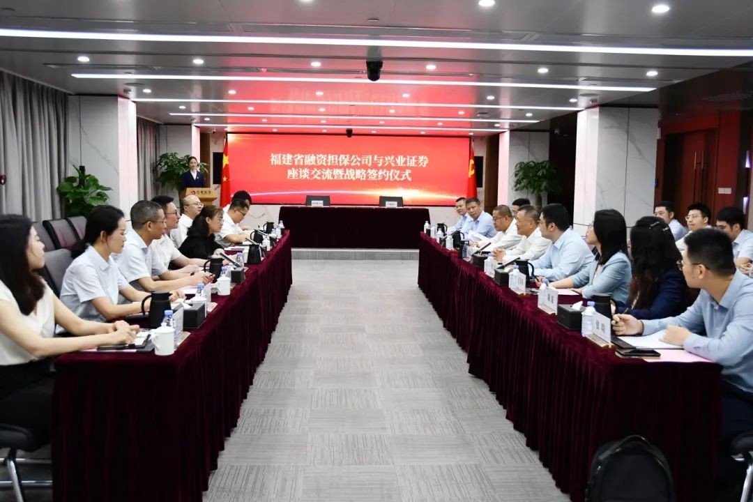 5月30日上午,省融资担保公司和兴业证券举行合作交流座谈会暨战略合作签约仪式。福建投资集团党委委员、总会计师林兵霞,兴业证券党委副书记、总裁刘志辉,华兴集团党委书记、董事长兼省融资担保公司执行董事王伟共同出席交流会,并见证双方签约。华兴集团党委副书记、总经理兼省融资担保公司总经理黄浩与兴业证券副总裁孔祥杰代表双方签署战略合作协议。