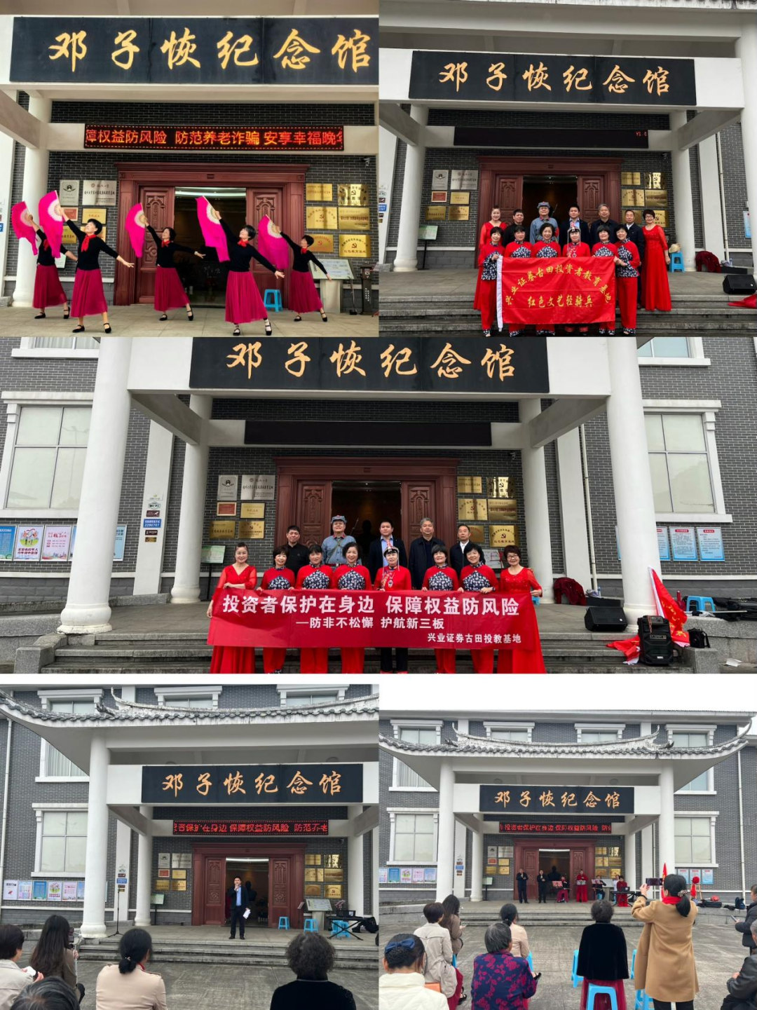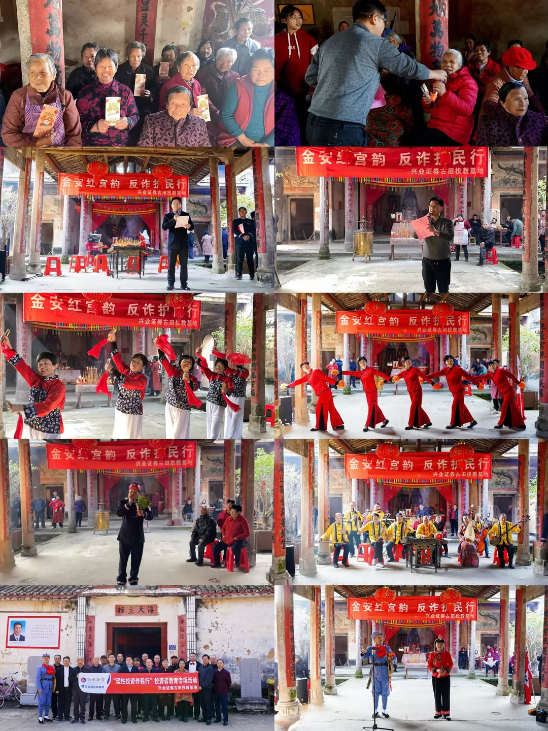银龄时期是金融风险高发阶段,老年人的信息获取与甄别能力弱,风险防范意识淡薄,容易受到各种诈骗活动的侵害。因此,我们特别关注老年群体的金融知识普及和风险防范教育,用最接地气的方式守护老百姓的钱袋子,与民间公益老年乐队联合组建“兴业证券红色文艺轻骑兵”、“兴业证券红古田文艺投教先锋”两支投教文艺宣传队伍,常态化深入乡镇、农村、社区、景区开展防范养老诈骗宣传,把防非反诈宣传教育与文化艺术娱乐相融合,为龙岩市乡村文化会客厅百项重点文化惠民活动添砖加瓦,让红色投教文艺宣传成为传承红色金融基因、助力乡村振兴的有生力量。