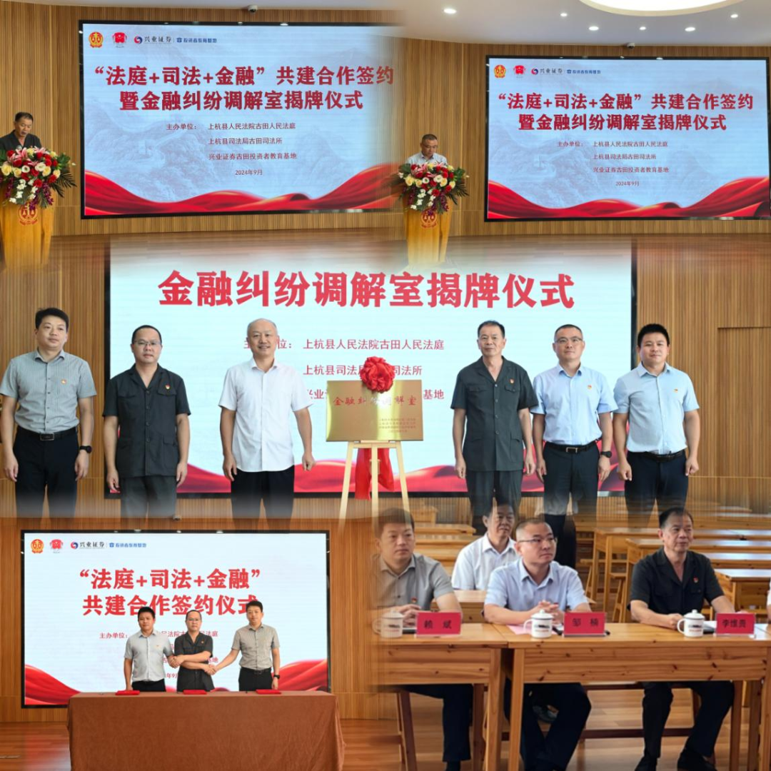 我们深知,金融市场的平稳健康发展,需多方共同努力,强化协作,形成合力。教育先行,源头治理,为充分发挥司法金融协同合力,促进金融纠纷的有效调解,提升公众对于金融纠纷调解的认识和支持度,我们以“司法+金融”、“公安+金融”、“警企驿站”多方联防共治为突破口,联合当地人民法庭、司法所举行“法庭+司法+金融”共建合作签约暨“金融纠纷调解室”揭牌仪式,创建了与司法系统协同合作的平台和更加专业高效、便民利民的金融纠纷案件多元化解工作机制,筑牢司法与金融沟通桥梁,提升纠纷调解实效,共同维护投资者合法权益。