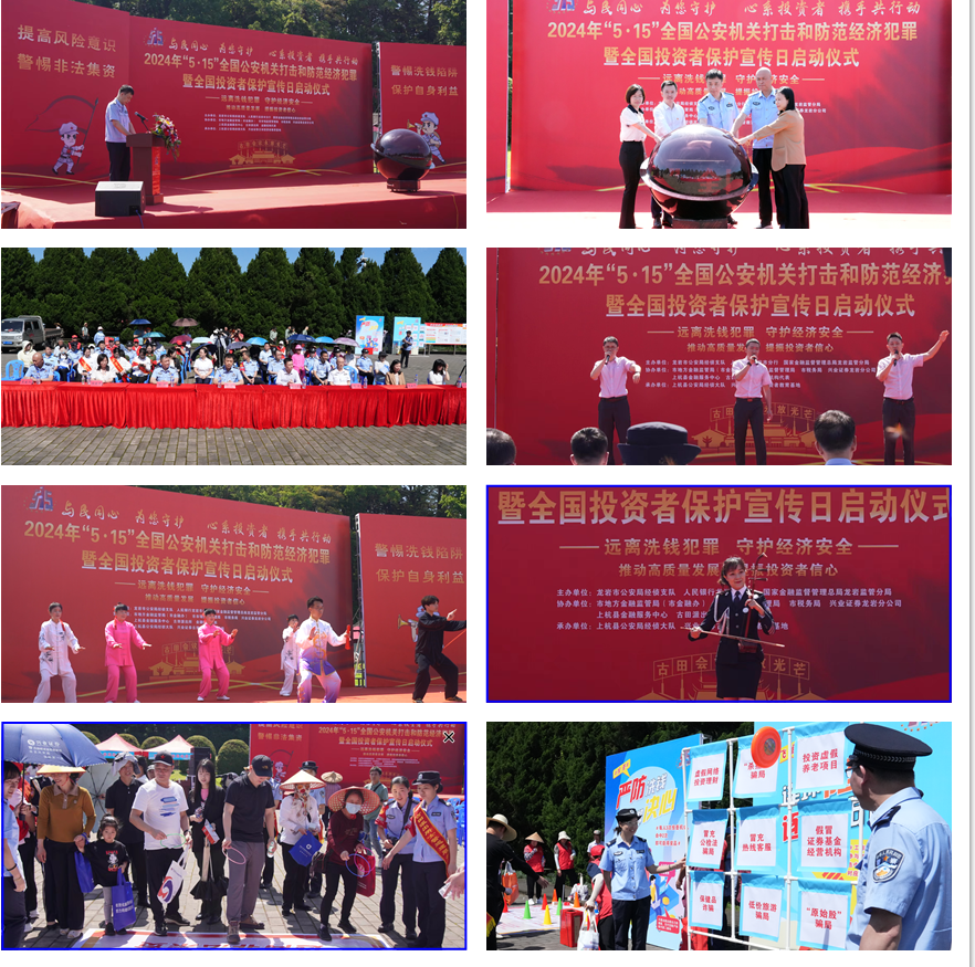 我们与龙岩市公安局经侦支队、人民银行龙岩市分行、龙岩市地方金融监管局、上杭县公安局经侦大队等部门通力合作,共同启动2024年“5˙15”全国公安机关打击和防范经济犯罪暨全国投资者保护宣传日活动,凝聚社会各方力量开展专项宣传。我们还与“人民满意派出所”、全国“公安楷模”古田派出所携手共建,访企业、到社区、进街道、进学校,通过“以案说法”,让“天上不会掉馅饼、高利保本是陷阱”的理念深入人心,提升人民群众的反诈识骗意识,构建起全方位、多层次的投资者保护网络,筑牢了反诈防线。