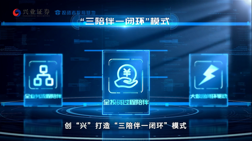 “三陪伴一闭环”模式是兴业证券“权兴权益”投资者保护生态的核心架构。它体现了兴业证券在投资者保护上的深度创新,通过全投资过程陪伴、全业务流程陪伴、全天候服务陪伴,为投资者提供全方位、全生命周期的投教服务,并借助闭环效能分析机制实现快速响应与持续优化。