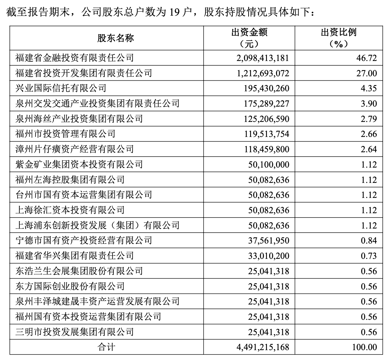 14名新股东中,除紫金矿业的子公司紫金矿业集团资本投资有限公司以外,其余来自不同区域的地方国资企业。其中包含了泉州市、福州市、漳州市、宁德市、三明市等福建省内的市属国资体系内的企业,还有浙江台州市的市属企业,同时还有两家来自上海国资。