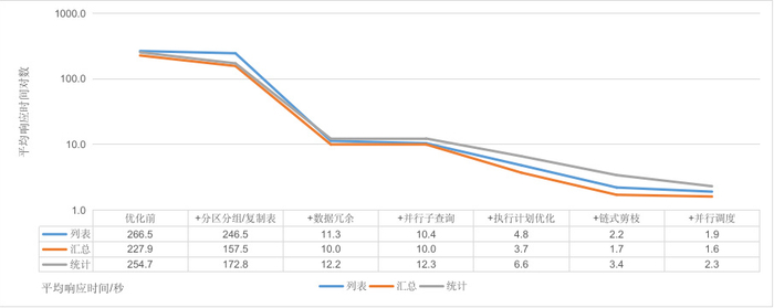 通过上述数据可发现,同一优化策略在各类应用场景所产生的性能提升效果存在差异,例如分区分组在汇总/统计场景效果显著,而在列表查询中则效果并不突出。