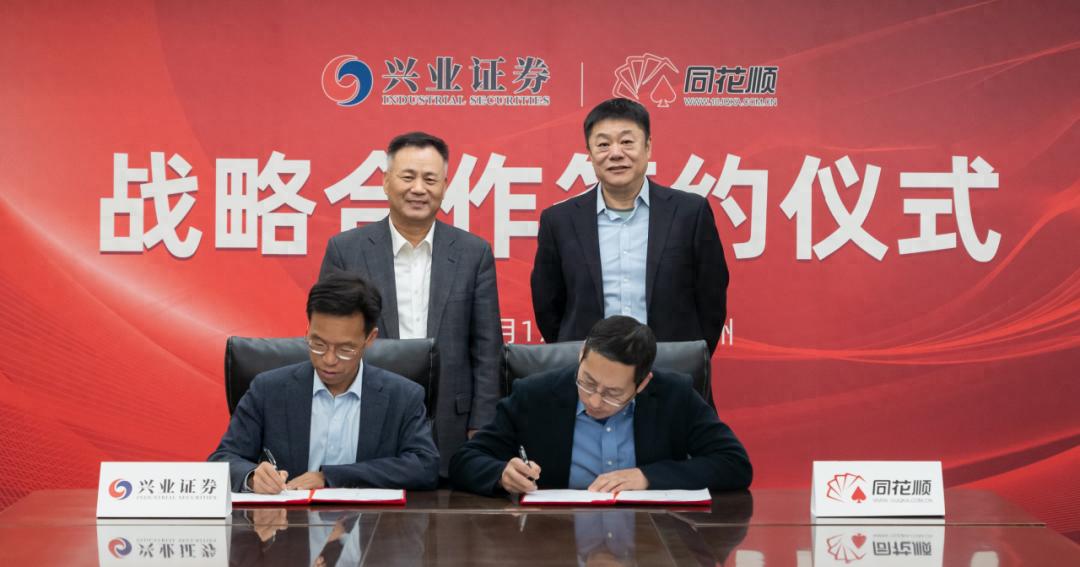 12月17日, 兴业证券 党委副书记、总裁刘志辉与 同花顺 副总经理朱志峰进行座谈,出席双方战略合作签约仪式并见签。