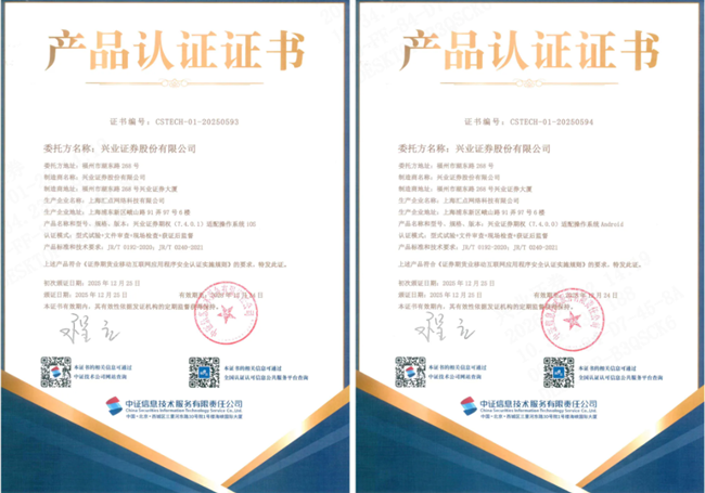 近日,兴业证券期权APP凭借过硬的安全管理体系与个人信息保护能力,顺利通过证券期货业APP 安全认证,喜获 iOS、Android 双平台认证证书,兴业证券信息系统安全体系建设获得行业权威认可。