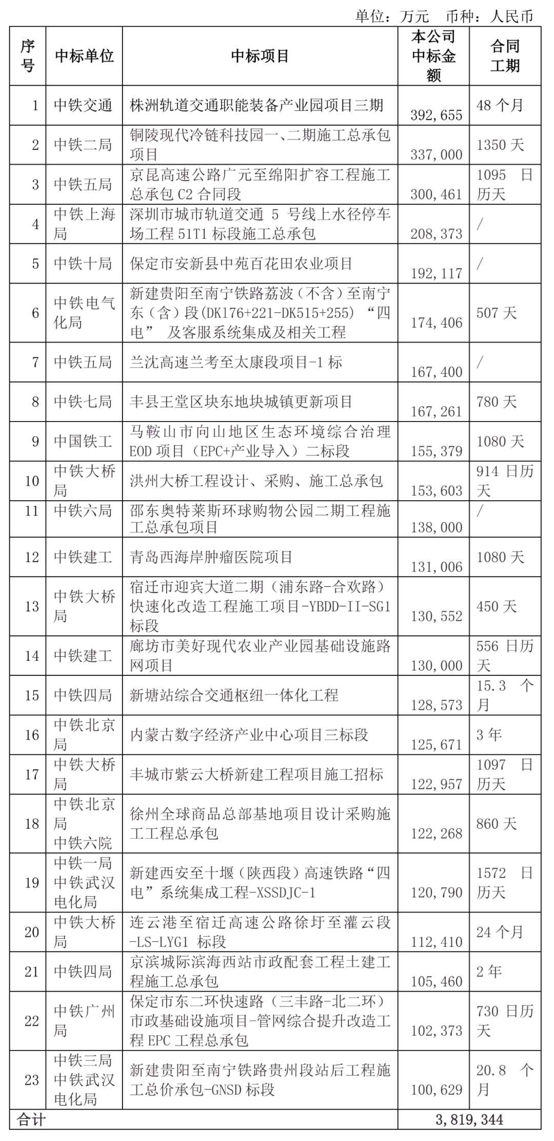 3月10日,中国中铁发布公告(编号:临2022-011),公司于近期中标多个重大工程,中标价合计约人民币3,819,344万元,约占本公司中国会计准则下2020年营业收入的3.93%。