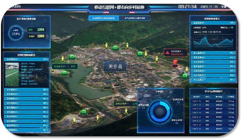 智慧农业大数据中心建成后,该项目将建立数字化大棚。数字化大棚内配置各类智慧设备,种植人员在大数据中心平台可通过AI摄像机监视农作物生长情况,各类传感器全程采集空气、水肥等数据,可随时调取温度、湿度、土壤监测情况,结合大数据中心智能分析,提前预警和应对各种不利因素。还能通过手机app实现自动卷帘通风、自动喷淋灌溉、远程浇水施肥,大幅度降低人工成本,提高农业资源利用率和生产效率。