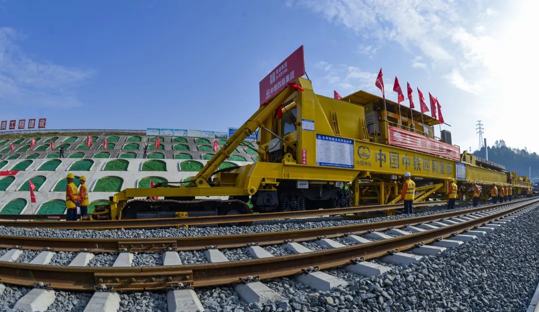 汉巴南铁路南充至巴中段位于四川省东北部,正线全长148.04公里,设计时速250公里,共设6座车站,桥隧比约69.13%,全线铺轨任务由中铁四局承担。此次铺轨施工,中铁四局投入国内先进的CPG500型无缝线路长轨条铺轨机组和铁路有砟、无砟轨道铺设一体式长钢轨牵引车,较传统施工方式,机械化程度提高90%,辅助作业人员数量降低63%,不仅节约施工成本,还大幅缩短铺轨工期。