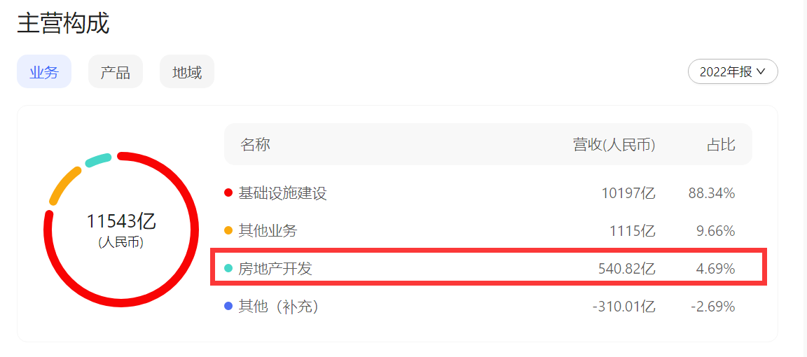 据中指研究院数据,今年上半年,中国中铁的房地产全口径销售额以361.2亿元排在行业第24名。在2022年,中国中铁的房地产全口径销售额排名同样是第24位。值得一提的是,2022年房地产业务的营收仅占到中国中铁总营收的4.69%。